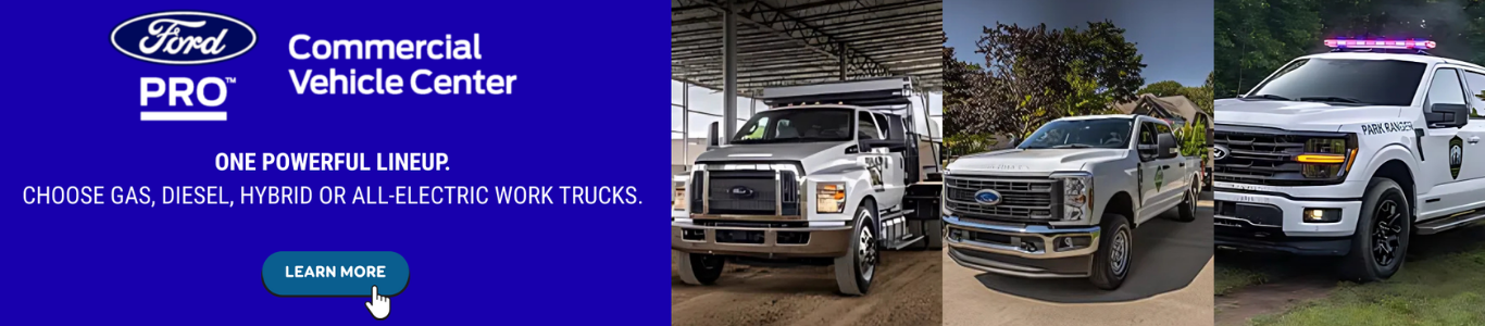 Our Commercial Sales Department works with businesses across a wide range of industries, including construction, electrical, plumbing, HVAC, landscaping, delivery and municipal services. We know that selecting the right work truck or utility truck goes beyond horsepower - it's about payload capacity, upfit compatibility, durability, and total cost of ownership.